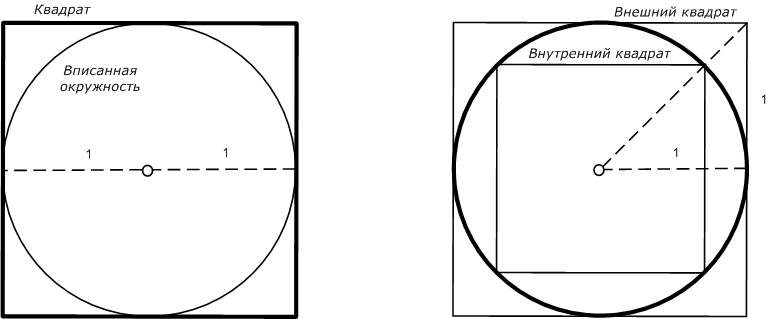 Так что же мы тогда делаем на самом деле, решая задачу о квадратуре круга, сравнивая между собой квадрат и окружность? мы берем естественный квадрат и вписываем в него окружность или берем окружность и мысленно размещаем квадраты внутри и вовне?