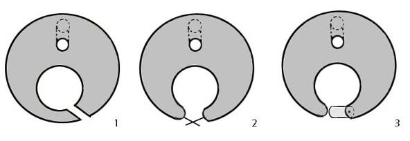 Модификаций несъемных колец придумано множество, самые распространенные изображены на рис. 12. Самый простой вариант – сделать в обычном несъемном кольце пропил (рис. 12.1) несколько под углом, чтобы кольцо не соскальзывало со шнура самопроизвольно или при поимке мелкой рыбы. Однако этот вариант самый простой, но и самый неудачный – иногда кольцо соскальзывает когда не надо, а иногда не сразу соскальзывает при поимке крупного экземпляра.
