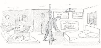 Мы вернулись в офисное здание. Там в атриуме висели картины, много света. Красиво. На стенах – разные схемы, предназначенные для облегчения управления, разные графики. Мы прошли в просторный кабинет, который тоже меня приятно удивил. Целая стена с благодарностями и наградами. Шикарный стол с креслом, богатое убранство. Всё это он мне показал с гордостью. А затем подвёл меня к небольшой двери в конце офисного коридора. Открыл эту дверь и сказал: «А здесь я живу». Столько печали в глазах человека я видел нечасто…