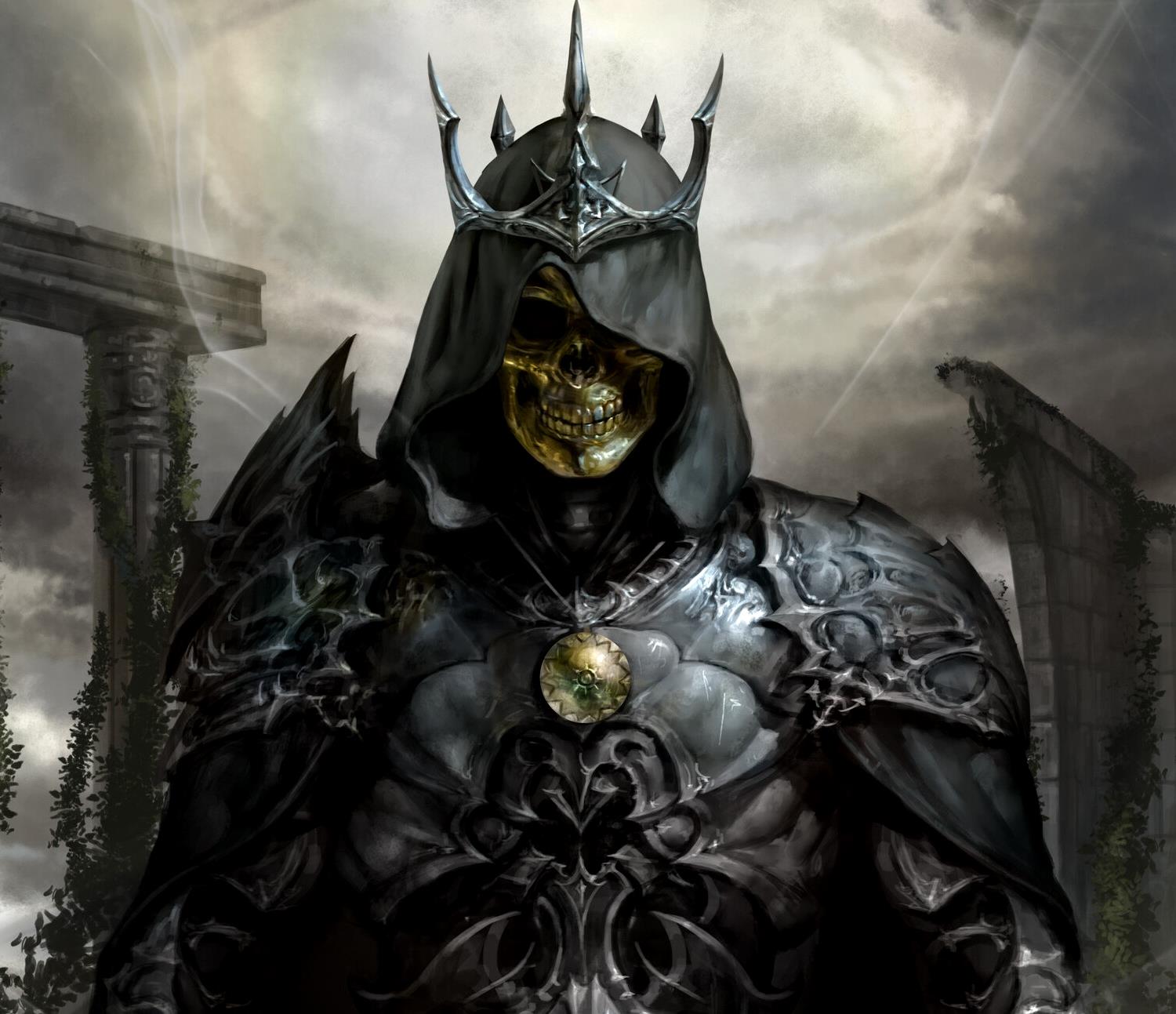 – Да-а-а! – мастер-кузнец чесал в затылке, удивлённо разглядывая мою работу. Рыцарь в хищного, мрачного вида броне, с золотой маской черепа вместо забрала и зубчатой чёрной короной поверх чёрного же шёлкового капюшона. С чёрным плащом, струящимся сзади… Так как сама доска имела нужный цвет, мне осталось только оттенить этот цвет мелом так, чтобы в итоге получился готовый рисунок. Техника непростая, но посильная для опытного художника.