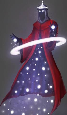В моей голове сразу возникла фигура, одетая в чёрные одеяния, внутри которых светилось бескрайнее звёздное пространство – будто настоящий портал в открытый космос вместо одежды. А на месте лица этой фигуры красовалось идеально отполированное серебряное зеркало, способное отражать любые объекты назад обидчику, как этот делал алхимик!