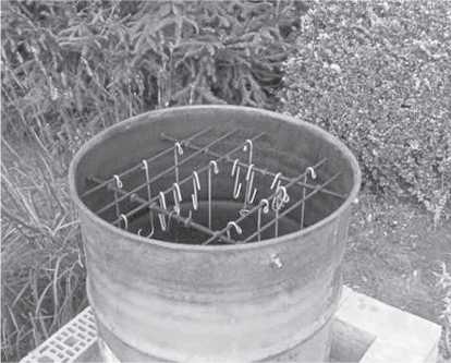 Ключевым моментом является изготовление не просто коптильни (нагреваемой на газу или на костре), а именно электрической. Есть довольно простой способ добиться желаемой цели, даже не имея специальных навыков и познания в электрике. Для этого вам понадобится старый холодильник, желательно небольших размеров, и обычная электроплитка. Во-первых, необходимо удалить охладительный агрегат и изолирующие компоненты, во-вторых, просверлить небольшое количество отверстий, через которые будет уходить пар. Поддон для собирания жира можно изготовить из металлического листа, также можно использовать обычный жаропрочный противень, особенно хорошо подойдут противни, идущие в комплекте со старыми газовыми плитами. Поддон с опилками нужно разместить на электроплитке, причем чем меньше воздуха будет поступать к опилкам, тем меньше вероятность воспламенения. При этом постоянного дежурства у такой коптильни не потребуется, да и занимать она будет немного места. Пример электрокоптильни, сделанной своими руками, можно увидеть на форзаце в начале этой книги (рис. 5).