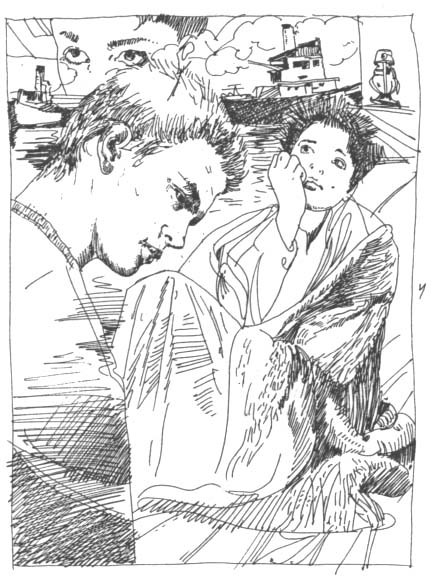 Сидящий у рулевого весла чуть улыбнулся, посмотрел на море, долго взглянул на мальчика.