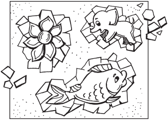Силуэт каждой наклеенной на бумагу скорлупки своеобразен, он способен дать значительный толчок воображению художника. В такой силуэт можно вписать контуры человеческих фигур, различных животных, зданий, машин, растений, цветов и многое другое (рис. 4).