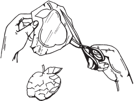 Эта операция чем-то похожа на ту, что была описана в предыдущей главе, однако имеет некоторые отличия. Для данной техники следует использовать только сырые яйца, не удаляя при этом тонкую эластичную пленку, выстилающую скорлупу изнутри. Пленка не дает рассыпаться скорлупе при ударе. Поэтому скорлупки надо вымыть и высушить, а затем подклеить под них специальную подкладку в виде листа тонкой бумаги. Укрепленные подкладкой заготовки легко резать обычными ножницами: скорлупки не распадаются на отдельные кусочки.