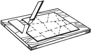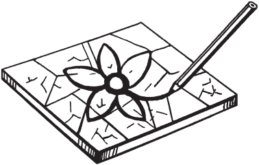 При изготовлении мозаичного набора рисунок нужно переводить дважды – на гладкую дощечку, которая послужит основой изделия, и на облицовочные пластинки. На дощечку изображение легко перенести, используя копировальную бумагу и твердый остро заточенный карандаш.