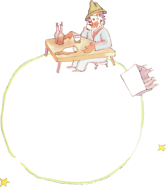 На следующей планете жил пьяница. Маленький принц пробыл у него совсем недолго, но стало ему после этого очень невесело.