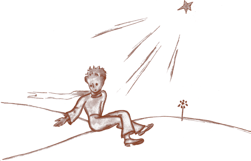 Долгие часы мы шли молча. Наконец стемнело и в небе стали загораться звёзды. От жажды меня немного лихорадило, и я видел их будто во сне. Мне всё вспоминались слова Маленького принца, и я спросил: