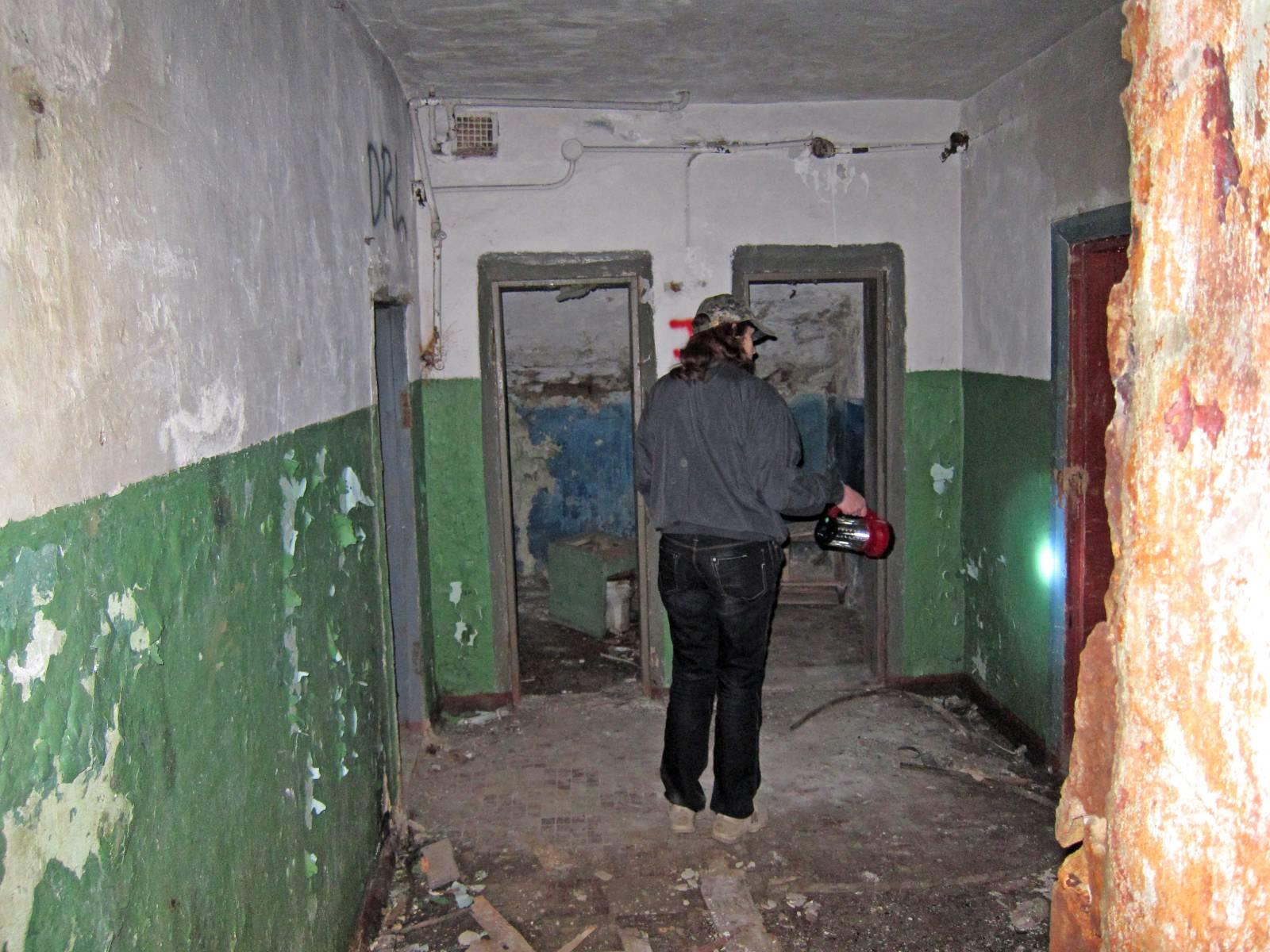 Гермодверь между аварийным выходом и самим бомбоубежищем была приоткрыта – наверное, чтобы подземелье слегка проветривалось. Мы попытались открыть её пошире, но с таким же успехом можно пытаться плечом сдвинуть с места танк. Пришлось протискиваться в щель. Само убежище действительно оказалось в приличном состоянии, только деревянная мебель и плакаты на стенах местами тронуты плесенью. Свет наших фонарей выхватывал отдельные детали обстановки, а шаги отдавалась эхом от бетонного потолка. Я представила себе, что весь этот зал заполнен людьми. Душно, тесно, а самое главное – неизвестно, что там, наверху. Может, там уже и нет ничего, и выходить больше некуда. Или завалило основной вход в убежище, и выбраться можно только через аварийный. Судя по размерам, убежище рассчитано на несколько сотен человек, а через аварийный выход в лучшем случае сможет выбраться десяток – только чтобы позвать на помощь. А если помощь не придёт, убежище превратится в братскую могилу.