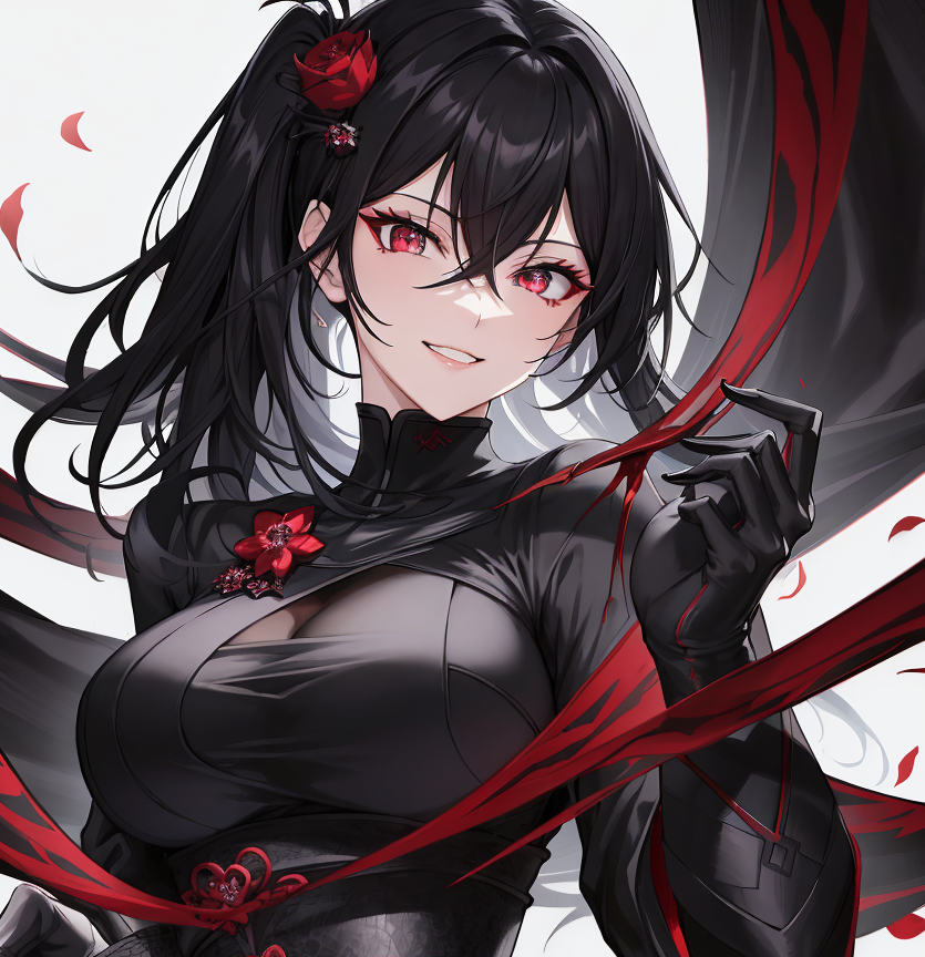 Немного крови на её чёрном кимоно, немного на садистки улыбающемся лице и капля на её чёрных волосах.