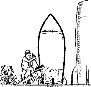 Таким образом, ракета, при прочих равных условиях, залетает при полете по инерции тем дальше, чем больше ее масса. Но масса ракеты складывается из массы самого аппарата и массы горючего. При этом запас топлива в ракете должен быть весьма значителен. Нередко вес его в несколько раз больше веса самой ракеты.