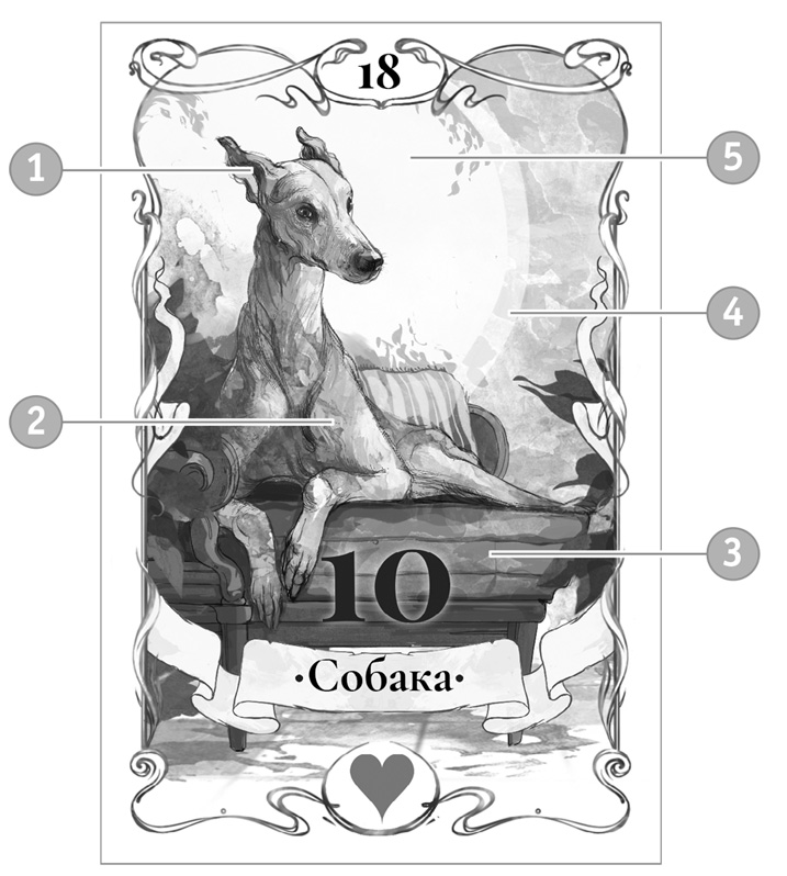 4. Окно, сквозь которое виден окружающий пейзаж, намекает на женскую природу этого символа. Для замужней женщины карта Собака может предвещать беременность, причем удачную. Собаки – животные плодовитые, они приносят здоровое потомство. Поэтому для людей семейных эта карта трактуется в позитивном ключе.