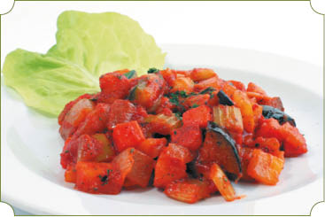 Ингредиенты: 250 г. свинины, 250 г. говядины, 4 ст. л. растительного масла, 2 ст. л. риса, 9 помидоров, 3 луковицы, 1 баклажан, 2 болгарских перца, 200 г. тыквы, 3 ст. л. измельченной зелени петрушки, сельдерея и укропа, ¼ ч. л. перца, соль.