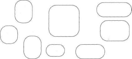 Овальные же, например, рамки почти не используются. Мы настаиваем на том, чтобы, как правило, использовались овальные рамки, ■а прямоугольники – лишь в некоторых случаях, когда это нужно для разнообразия или уместно по другим причинам. Возможны рамки и других конфигураций, о чем мы поговорим подробнее несколько позже.
