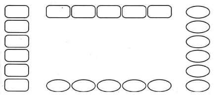 Выше мы написали, что, когда все же нужны по какой–либо причине прямоугольники, одно из условий их использования – рассредоточение по полю страницы (экрана, классной доски). Тем самым мы хотели подчеркнуть, что рассредоточение помогает и при таком затрудняющем восприятие моменте, как применение прямоугольников. Но даже если у нас прямоугольники со скругленными углами или даже овалы, слишком тесное расположение фигур–понятий выделение фигуры из фона затрудняет (см. рис. 24).