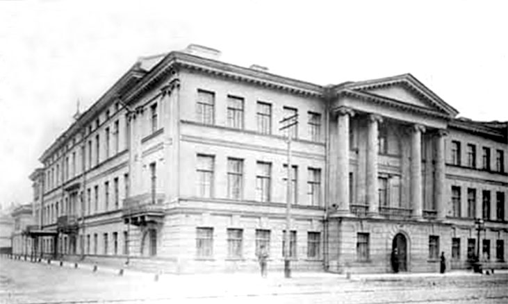 В 1802 г. участок получил от Измайловского полка М. Н. Муравьев – отец будущих декабристов Александра и Никиты. Но землю он вскоре продал. Купец 2-й гильдии С. С. Кочеров в 1805–1810 гг. построил здесь дом «каменный трехэтажный штукатуренный, крытый листовым железом. При нем на проспект балкон с четырьмя колоннами и деревянными перилами и три балкона на улицу с чугунными решетками» (авторство, приписываемое арх. Н. А. Львову, ныне ставится под сомнение). Несколько раз менялись хозяева этого строения. Была здесь армейская семинария, потом Военно-строительное училище, упраздненное в 1828 г., а в 1832 г. это здание отдали первому в России Училищу гражданских инженеров.