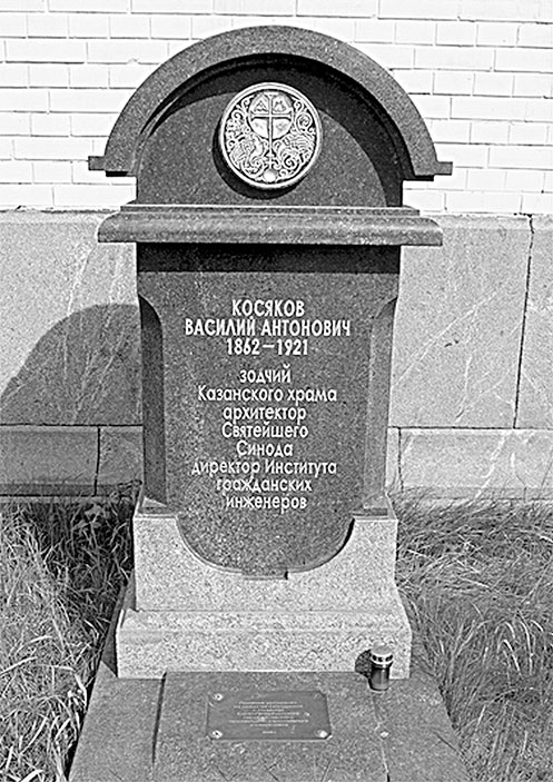 В. А. Косяков (1862–1921) по окончании в 1885 г. Института гражданских инженеров по классу Н. В. Султанова служил при Технико-строительном комитете Министерства внутренних дел и в Департаменте таможенных сборов Министерства финансов. В 1888 г. начал преподавать в Институте гражданских инженеров. В 1900 г. избран профессором института, в 1905-м – заслуженным профессором, членом совета и директором института. Так же, как и Султанов, проектировал в византийском и псевдорусском стиле. Развил тип однокупольного византийского храма с четырьмя апсидами (конхами), впервые предложенный Д. И. Гриммом и Р. И. Кузьминым в 1850-е гг.