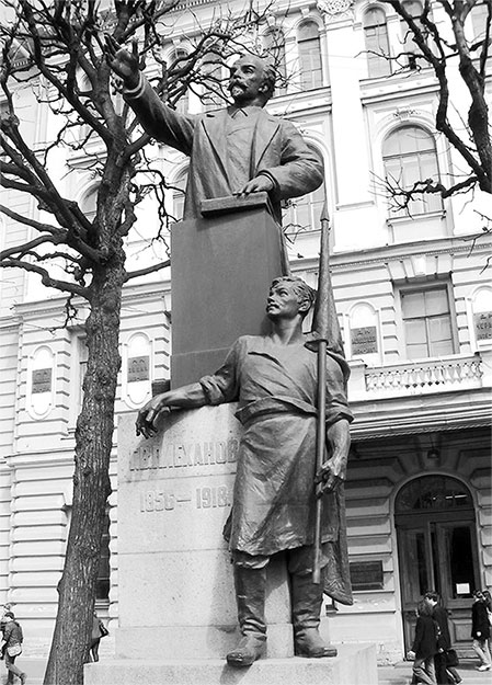 В 1925 г. на Технологической площади открыли памятник Г. В. Плеханову (ск. И. Гинцбург, М. Харламов, арх. Я. Гевирц).