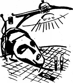 Крепс нажимает кнопку звонка. Пока санитары возятся с бесчувственным телом, он включает установку.