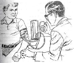 Существует два вида давления: максимальное и минимальное. Максимальное давление имеет место, когда сокращается левый желудочек; оно называется систольным давлением. Минимальное давление наблюдается перед следующим ударом сердца, оно называется диастольным давлением. Когда врач измеряет у вас давление крови, он пользуется прибором, фиксирующим давление с помощью столбика ртути, который поднимается и опускается под давлением. Шкала размечена в миллиметрах, а не в дюймах. Среднее систольное давление молодого человека составляет примерно 120 миллиметров ртутного столбика.