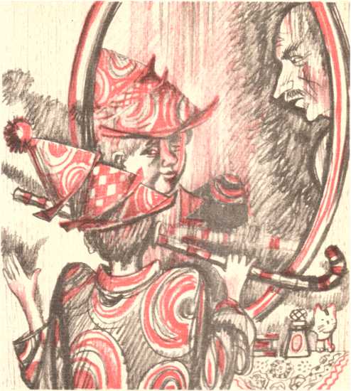 Мой вид развеселил меня ещё пуще. Вертя палкой, я принялся корчить забавные рожи и раскланиваться перед зеркалом. Потом стал срывать с головы колпаки и кидать их воображаемой публике. Клоунские штиблеты мешали мне двигаться. Я сбросил их и начал прыгать, дурацки задирая ноги и сам себе подмигивая.