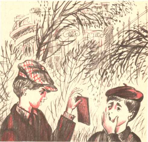 – Не по-честному! – передразнил его Лёшка. – Ладно, пусть по-твоему. Сейчас будет на месте. – Лёшка вырвал дощечку из рук товарища и, снова упрятав её в рукав, зашагал дальше. Витяй поспешил за ним. Вскоре они уже были у злополучного прилавка. Как нарочно, народу сейчас у прилавка было совсем мало. Лёшка в нерешительности остановился и поглядел на Витяя. Тот понимал: положить картинку было куда труднее, чем тогда стащить. Витяй ждал, не зная, как помочь другу. Повременив, Лёшка всё-таки решился. Он подошёл к прилавку и, будто разглядывая дощечки, двинулся вдоль него. Недолго постояв возле Чарли Чаплинов, вернулся к ожидавшему его Витяю.