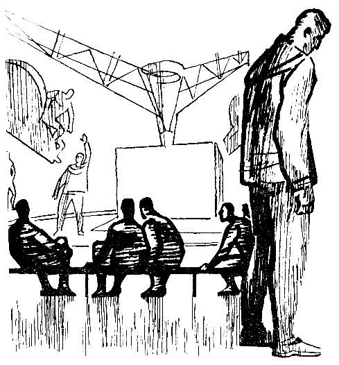 Их вот-вот должны были вызвать, и они сидели в коридоре на подоконнике перед дверью. Сережа Кондратьев болтал ногами, а Панин, вывернув короткую шею, глядел за окно в парк, где на волейбольной площадке прыгали у сетки девчонки с факультета Дистанционного Управления. Сережа Кондратьев, подсунув под себя ладони, смотрел на дверь, на блестящую черную пластинку с надписью «Большая Центрифуга». В Высшей школе космогации четыре факультета, и три из них имеют тренировочные залы, на дверях которых висит пластинка с такой же надписью. Всегда очень тревожно ждать, когда тебя вызовут на Большую Центрифугу. Вот Панин, например, глазеет на девчонок явно для того, чтобы не показать, как ему тревожно. А ведь у Панина сегодня самая обычная тренировка.