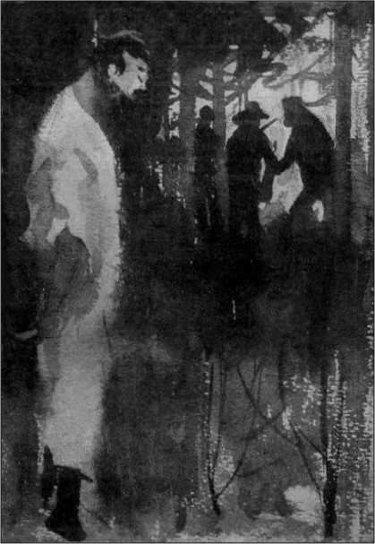 Когда они уходили, один разбойник обернулся и, глядя между деревьев на висячий труп, сказал: