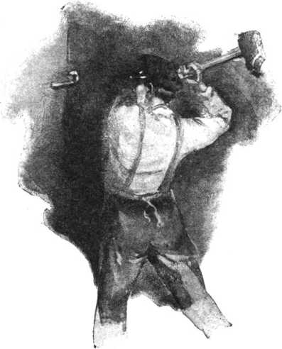 Пока мы наскоро расставляли мебель, чтобы устроить себе ночлег – дворник возился около крюка, заколачивая его огромным молотом. От его могучих ударов содрогались стены, звенели стекла в окнах, дрожала вся квартира; из молота и крюка летели искры, по лицу парня ручьями струился пот, – но крюк не поддавался, только немного свернулся на сторону и загнутый конец его еще больше закруглился, образовав почти глухое кольцо.