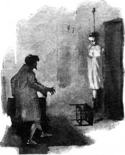 Дворник прошел прямо в спальню, к тому углу, где торчал крюк. Заглянув туда, он вздрогнул и отступил назад, испуганно бормоча: