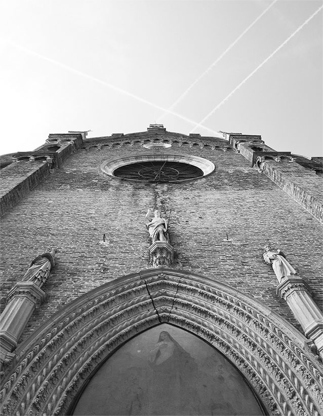 Святой Франциск был реформатором не меньшим, чем Мартин Лютер, и гораздо более симпатичным. Религиозные терпимость и открытость, проповедуемые им, католицизм спасли и сохранили – принятие сегодняшним папой имени Франциска, в истории папства ставшего Первым, является признанием этого факта. Сила, излучаемая святым Франциском, ощутима и в деятельности ордена его имени, на протяжении всей своей истории ничем себя не запятнавшего, никаким савонаролианством, чем он выгодно отличается от большинства других католических орденов, от доминиканцев в первую очередь. Конечно, и среди францисканцев попадались типы, подобные уже упомянутому Иоанну Капистрану, но они немногочисленны и почти случайны. Святой Франциск был новатором, и фасад первой францисканской церкви в Венеции, несмотря на всю его суровую готическую сдержанность, излучает новизну.