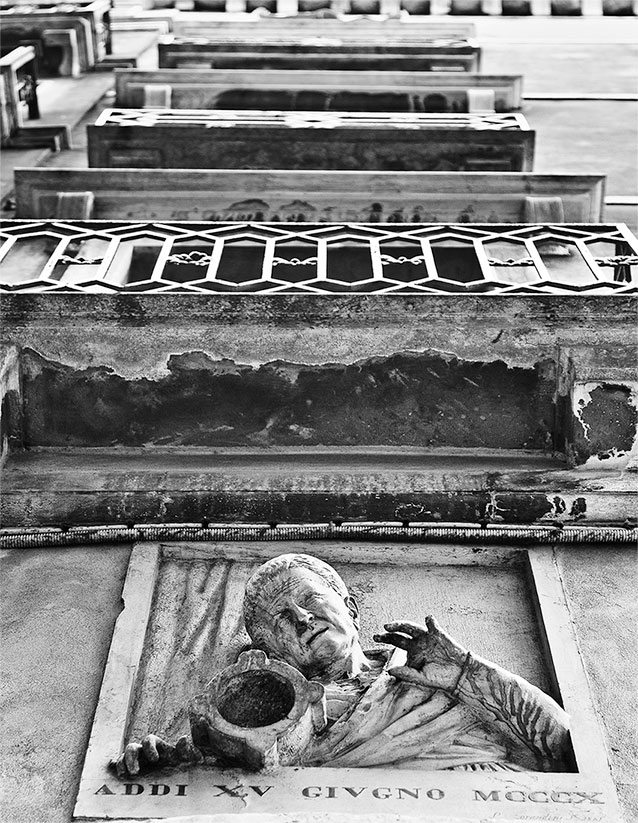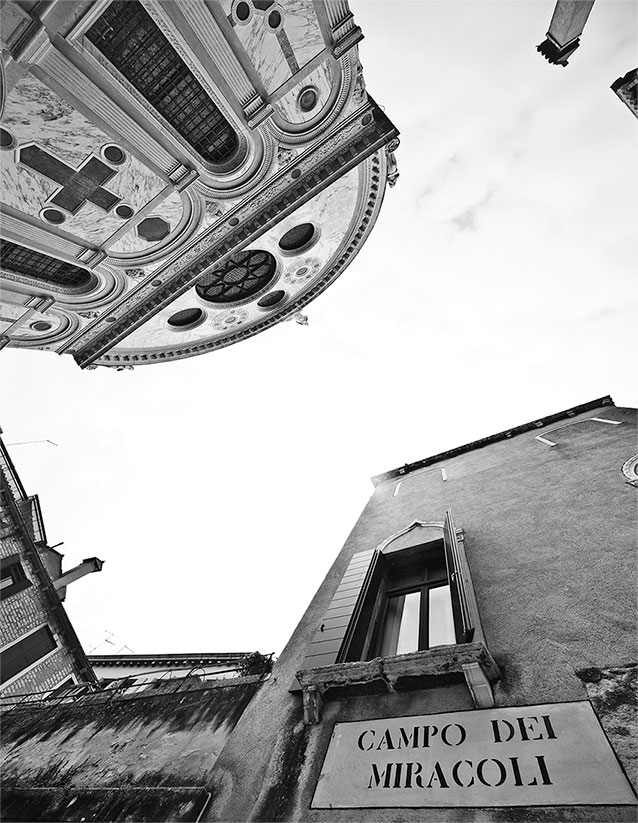 она обряжена в жёлтое платье, и вся картина страшно жёлтая, просто giallo, как будто гепатитом C заражённая и Дарио Ардженто срежессированная – на самом краю картины лежит тарелочка с выложенными на ней выковырянными глазами, принадлежащими святой, и длинный острый четырёхгранный кинжал, коим глаза и ковырялись. Бледность христианской мученицы вдруг стала пугающе влекущей. Giallo a Venezia: кокаинистка или героинщица? Как Лючию, в свете всего, что Эльфридой было сказано, угораздило жёлтое надеть? Намёк на то, что её, как гласит легенда, целое стадо быков в публичный дом тащило? И тут же я вспомнил, что и на картинах Лотто святая Лючия всегда в жёлтом, лимонно-жёлтом – значит, это не ошибка Тьеполо, в своём декадансе все значения – было бы лишь красиво – перепутавшим, и мне совсем поплохело, я заметался, как больной в своей постели беспокойной, и выскочил наружу, но отправился не в церковь ди Сан Сальвадор, chiesa di San Salvador, Спасителя, что в сестиере Сан Марко, куда тело Катерины было перенесено в конце XVI века и где наследники отгрохали ей специальную, роскошную гробницу Корнеров – Санти Апостоли-то находятся в самом начале Страда Нова, Strada Nuova, Новой Дороги, как называется улица, специально пробитая в конце XIX века в путанице средневековой застройки, чтобы прямо от вокзала направлять туриста на Пьяцца Сан Марко, но относятся к Каннареджо, – а в церковь ди Санта Мария деи Мираколи, chiesa di Santa Maria dei Miracoli, Святой Марии Чудес, находящейся в двух шагах от Санти Апостоли и также принадлежащей Каннареджо. Тело Катерины Корнер было перенесено в церковь ди Сан Сальвадор, но душа её перелетела в Санта Мария деи Мираколи.