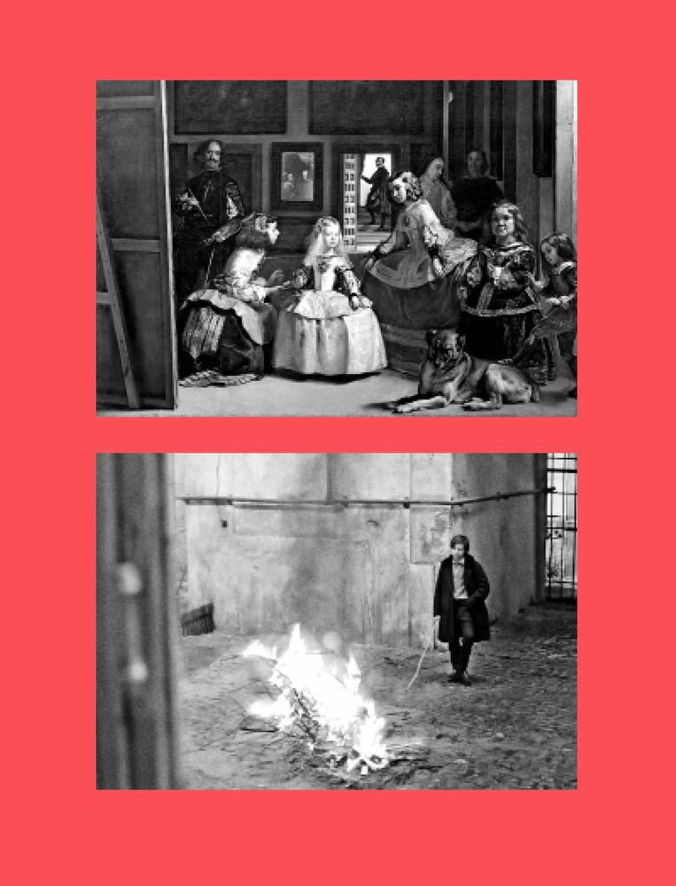 Зеркало подобно памяти. Оно оставляет все то, что отразить успело, на своем дне и, отражая новое, наслаивает его на то, что было прежде. «Менины» Веласкеса – пространство памяти зеркала. О том же и Тарковский, завесивший зеркалами все интерьеры своего фильма, но на мысль о сходстве «Зеркала» с «Менинами» меня навела сцена, в которой мальчика, жгущего во дворе костер из каких-то выброшенных елок, обсуждают родители. Родителей на экране не видно, их как бы нет, слышны лишь голоса, и в пространстве, пролегающем между ними и ребенком, их сыном, возникает особое напряжение, кажущееся бесконечным, непреодолимым. Это то чувство, что вдруг возникает, когда неожиданно замечаешь, что твой младенец уже не младенец, а самостоятельная индивидуальность, и между вами, до того столь тесно связанными физиологией, возникает та самая непреодолимая черта, что разграничивает всех людей. В «Менинах» мать и отец, то есть король и королева, тоже не попадают в фокус камеры, но они присутствуют, они – отраженье. Маленькая инфанта в своем жестком платье, такая крошечная и такая самостоятельная, совсем отдельна от них, хотя их взгляд, как мы видим в зеркале, сосредоточен на дочери. У Тарковского родители говорят о горящем кусте Моисея, король с королевой – о том, что Маргариту надо отправлять в Вену, замуж. Где она скоро умрет, но им это пока неведомо. Не знаю, думал ли Тарковский о Веласкесе, но если нет, то зачем и откуда в «Зеркале» испанская речь, испанцы и коррида? Откуда такая испанская грусть? Ведь не просто же в книжке нашел.