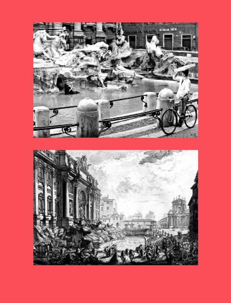 Шведки в Риме столь же экстравагантны, сколь и прекрасны: купание Аниты Экберг в фонтане Треви венчает римский миф о шведских женщинах. Сейчас трудно вообразить, что когда-то в чашу фонтана Треви можно было залезть и помыться под его струями. Теперь вокруг фонтана толпа круглые сутки, и круглые сутки около него дежурит полиция, следящая за тем, чтобы никто в него забрался в попытке повторить подвиг Аниты. Во времена Пиранези открытие фонтана было у всех на устах, за его строительством, сопровождавшимся разными скандалами, как финансовыми, так и творческими, следили, а постройкой гордились. Фонтаном восхищались как великолепным памятником современности, сравнимым с монументами времен императоров, а площадь перед ним, Пьяцца-ди-Треви, стала местом фешенебельного променада. Пиранези на своей гравюре, созданной года два-три спустя после второго открытия, помещает группу из двух разряженных дам, ведомых к фонтану изящным кавалером. Они, конечно, в фонтан не лезут, но именно благодаря Феллини и Аните фонтан на Пьяцца-ди-Треви, как и в Риме Пиранези, снова вошел в моду.