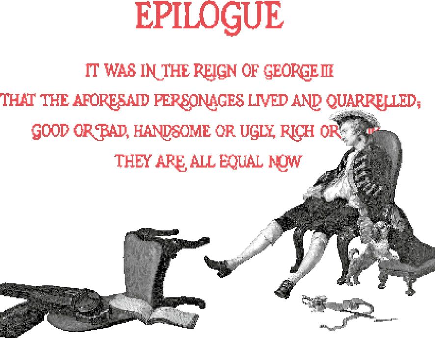 «Это было правление Георга Третьего, когда вышеупомянутые персонажи жили и ссорились, хорошие или плохие, красивые или уродливые, богатые или бедные. Теперь они все равны».