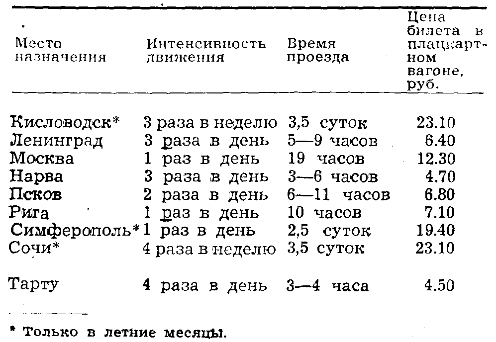 Переговорный пункт междугородной телефонной станции на ул. Вене, 9, открыт круглые сутки. Телефонные разговоры в пределах СССР с 18 до 7 часов (в субботу с 16 до 24 часов) стоят на 25 процентов дешевле.