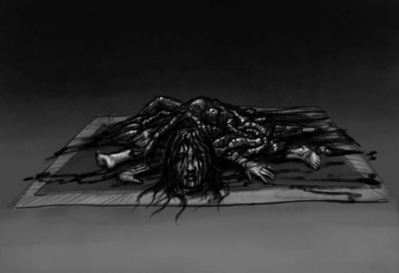Остальные части ее тела состояли из костей, фиолетовая масса плоти все еще смешивалась с различными органами, которые люди часто представляют в своем воображении, но никогда не ожидают увидеть вживую. Развернувшаяся передо мной волнующая картина насилия заставила меня тут же выронить пылесос и испустить пронзительный крик.