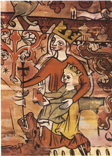 Дева Мария с младенцем. Роспись из церкви в Ордале, Норвегия. 14 в.