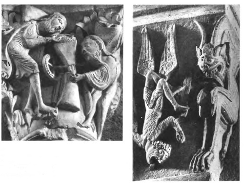 Падение Симона-волхва и дьявол. Капитель в соборе Сен Лазар, Отен. 12 в.