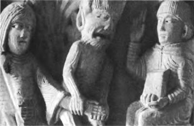 Дьявол, пытающийся ввести в соблазн св. Бенедикта, приведя к нему женщину. Капитель собора Сен Мадлен в Везелэ. 12 в.