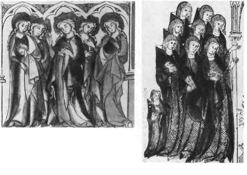 Супружеские пары – моды 14 в. Миниатюры из Венцеславовой Библии. Прага.