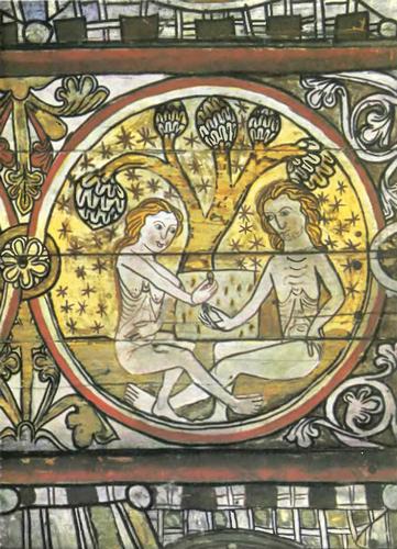 Адам и Ева. Роспись из церкви в Оле, Норвегия, конца 13 в.