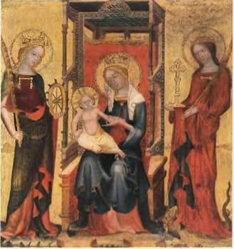 Мадонна с младенцем на троне с двумя святыми. 14 в. Прага