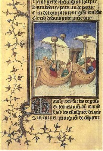 Кавалеры и дамы путешествуют по морю. Работа Мастера коронации девы Марии. Конец 14 – начало 15 в.