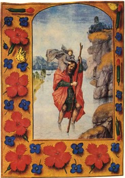 Святой Христофор. Миниатюра из фламандского часослова. Около 1480