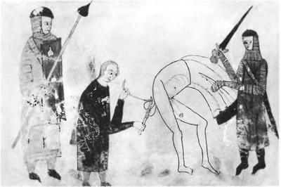 Кастрация прелюбодея. Миниатюра из рукописи 13 в.