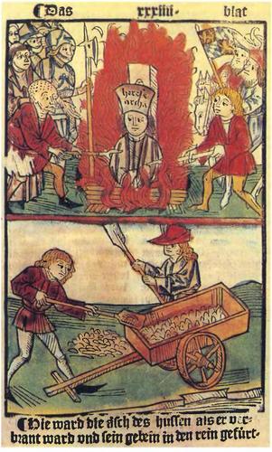 Сожжение Яна Гуса и сбор его пепла для сброса в Рейн. 1483