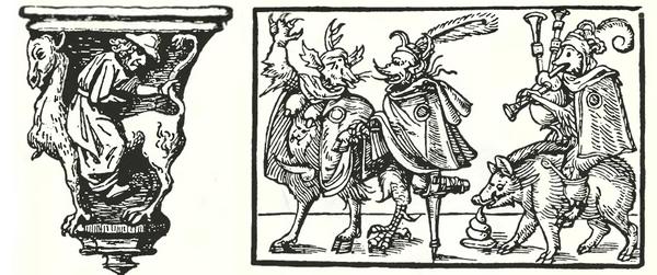 Иудей на козле. Резное сиденье в церкви Нотр Дам в Эршо, Бельгия. 15 в.