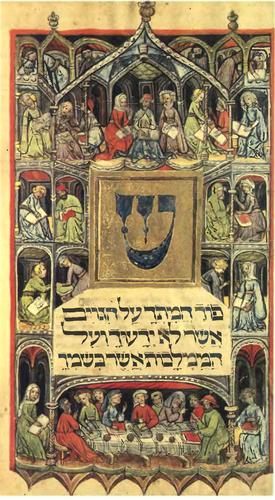 Книжники. Миниатюра из Пасхального служебника (Агады). Голландия, 14 в.