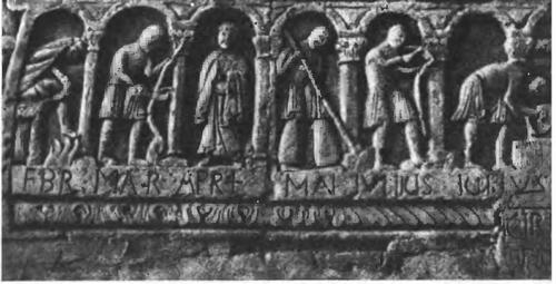 Труды двенадцати месяцев. Тимпан портала собора Сент Урсэ в Бурже. Первая половина 12 в.